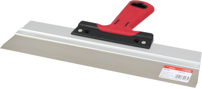 Усиленный фасадный шпатель с двухкомпонентной эргономичной ручкой. Предназначен для нанесения и выравнивания шпатлевок и других строительных растворов, а также для заделки трещин и швов. Артикул:  0533C