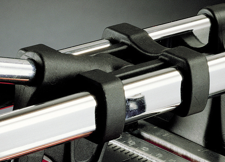 Скользящая каретка из технополимера с высокой прочностью, превосходящей прочность алюминия. Никакого движения рывками. Никакого окисления. Никакой смазки