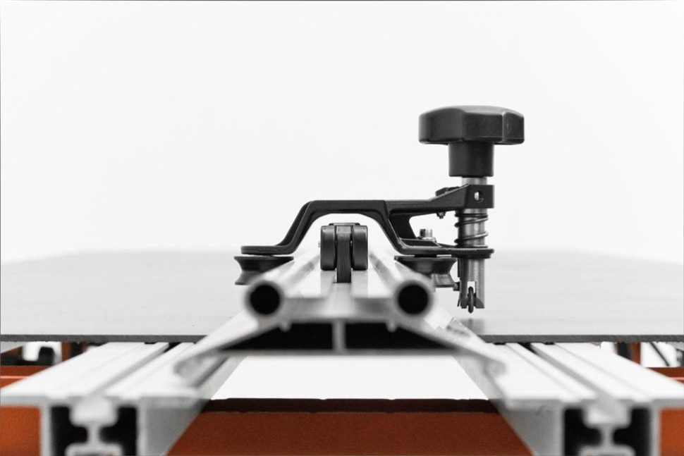 Плиткорез для резки плит большого формата. Удобен в использовании и транспортировки. Вес резчика 9 кг. Упаковывается в чехол с модульными отделами и карманом для хранения. RAIZOR состоит из двух частей по 160 см, литой режущий блок снабженный роликом из карбид вольфрама, щипцы для разлома плитки толщиной от 3 до 10 мм. Плиткорез оснащен 6-ю присосками , которые предотвращают сдвиг направляющей при резки.