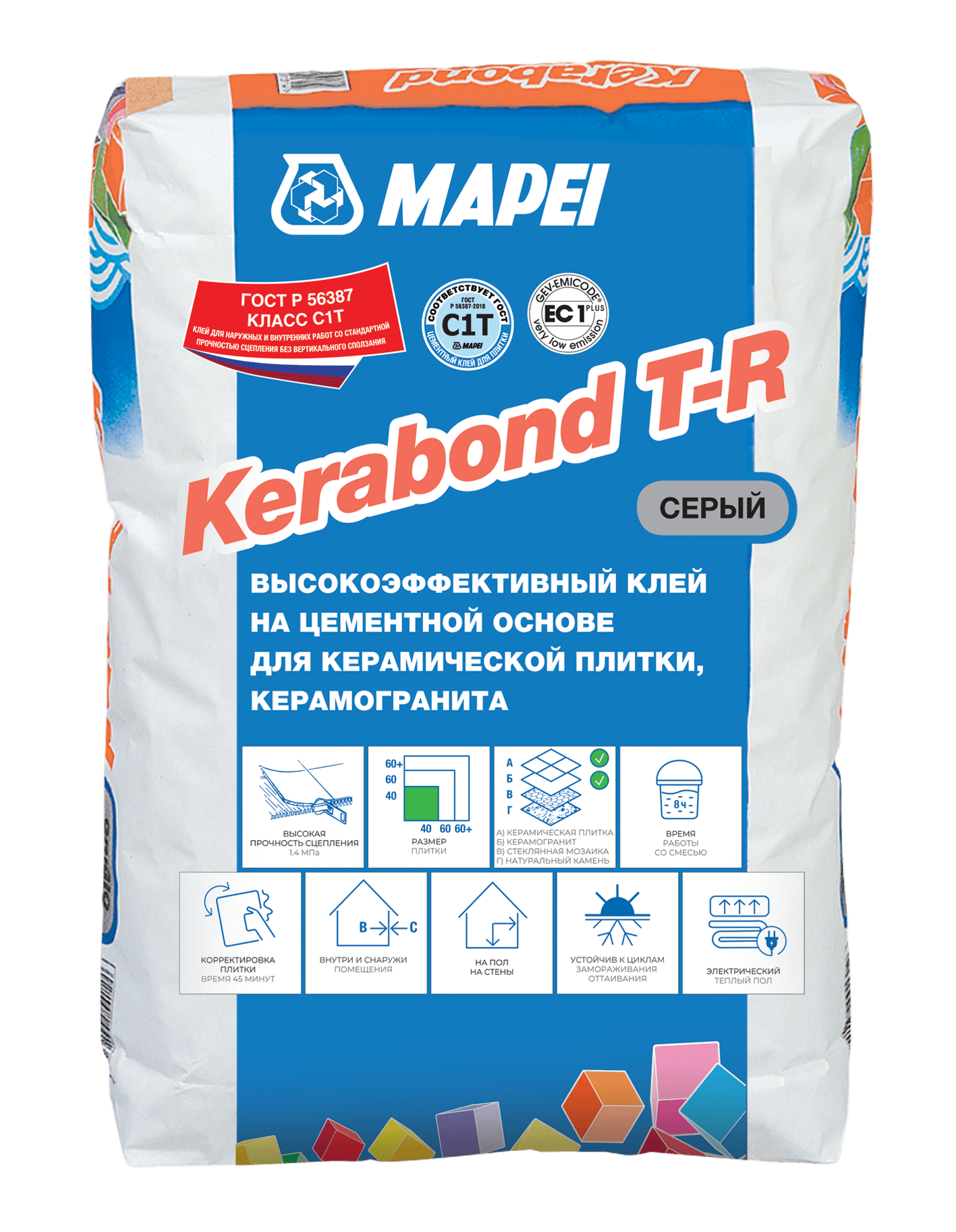 Усиленный тиксотропный клей на цементной основе для керамической плитки и керамогранита класса С1Т.