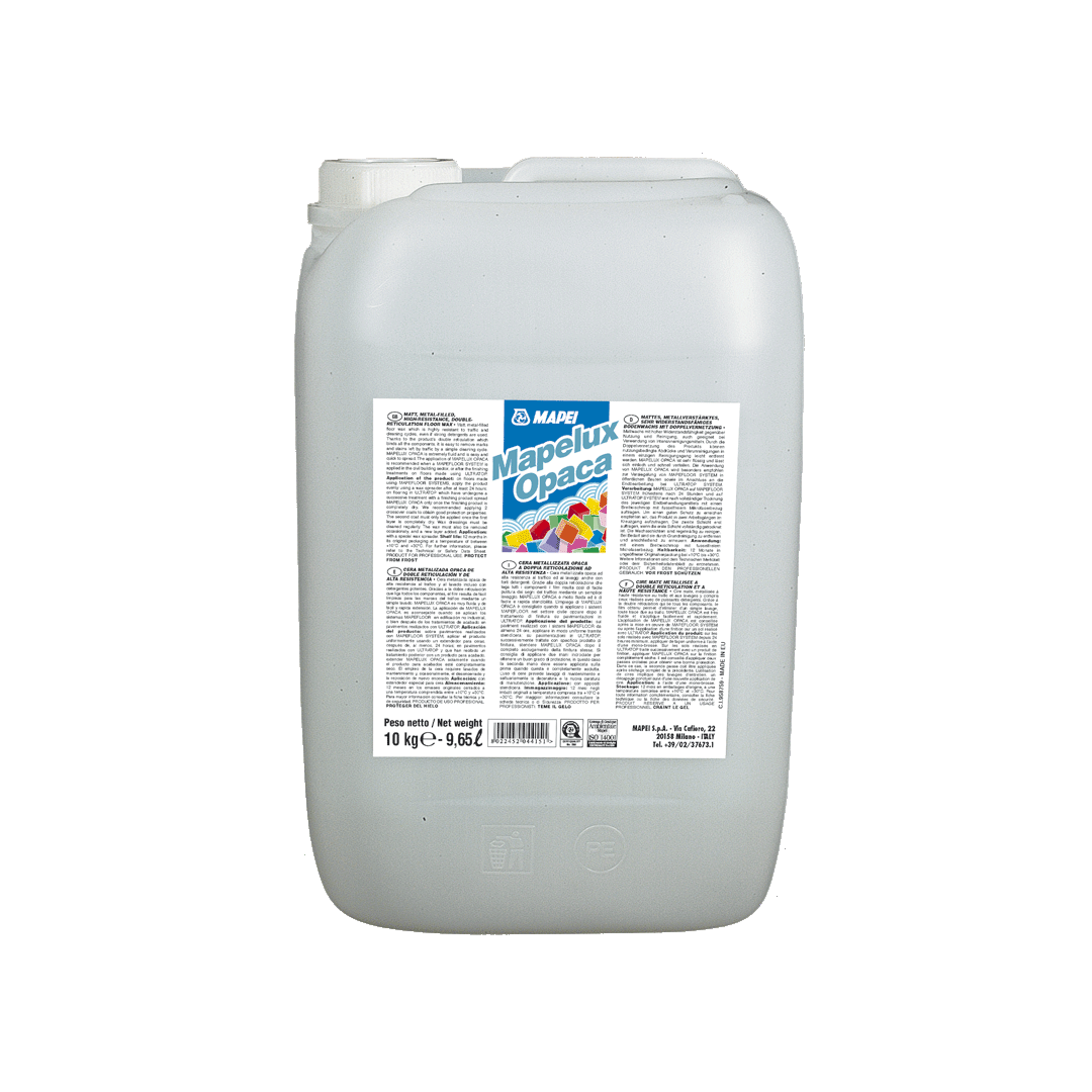 Mapelux Opaca используется внутри общественных зданий, таких как магазины, квартиры, офисы и т.д., для защиты полов, изготовленных при помощи Mapefloor System, подверженных особенно интенсивным нагрузкам, а также облегчает операции по уходу за финишным слоем полов, изготовленных при помощи материала Ultratop.