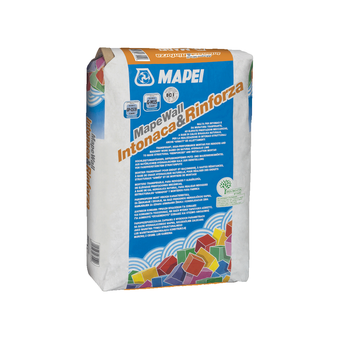 Высокопрочный, на основе натуральной гидравлической извести, паропроницаемый штукатурный и кладочный раствор с очень низкой эмиссией летучих органических соединений, для изготовления структурных штукатурок, «армирующих» и монтажных растворов.
