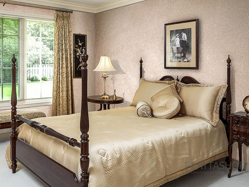 Интерьерное матовое покрытие с эффектом велюровой ткани и с серебряными мерцающими блестками. При использовании темных оттенков покрытия, мерцающие серебряные блестки создадут эффект россыпи бриллиантов на поверхности велюровой ткани. Блестки проявляются только в момент изменения угла обзора или освещения, что придает поверхности дополнительный акцент с ненавязчивой привлекательностью. Покрытие является влагостойким и моющимся, поэтому не требует дополнительной защиты от влаги.