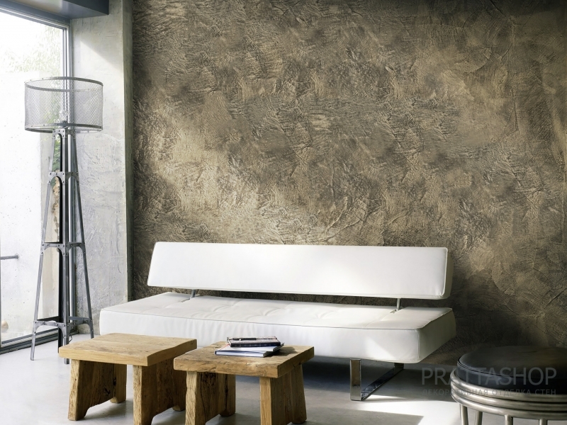 Венецианская штукатурка с золотистым эффектом черного мрамора. В основе состава материала гашеная известь (12-ти месячной выдержки) с гранулированной мраморной крошкой Каррарской породы, которые в совокупности обеспечивают покрытию высокую прочность, экологичность, антигрибковые свойства, долговечность эксплуатации и дизайн текстуры мраморной породы Каррарского происхождения. Покрытие специальным перламутровым финишем METALLINE позволило дополнить мраморную тесситуру дополнительным золотистым переливом, а также обеспечить готовой поверхности моющиеся свойства, что делает его подходящим для отделки поверхностей в ванных комнатах и душевых. Следует также отметить, что материал имеет особый сертификат пожаробезопасности, категории КМ-0, что делает его пригодным к использованию в любых интерьерах без ограничений по экологичности и безопасности.