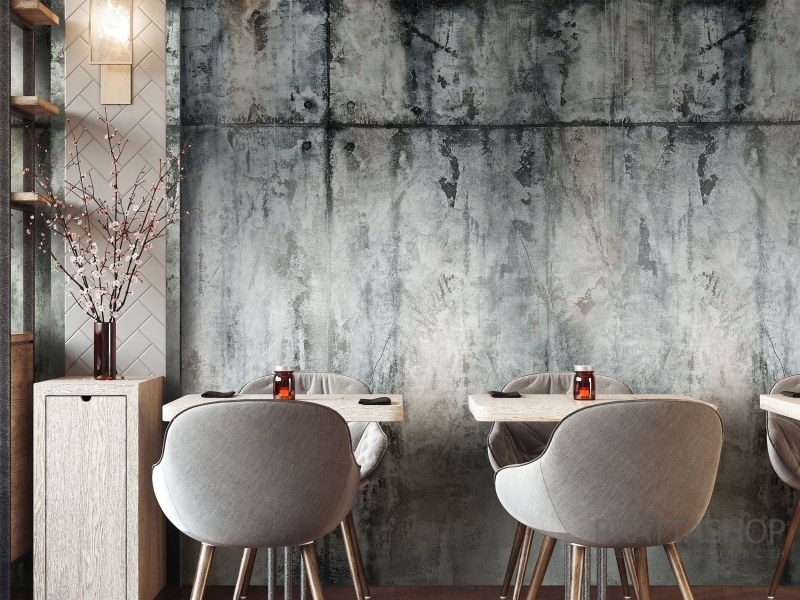 Декоративная штукатурка Intonachino на основе гашенной извести и минеральных наполнителей выполненная в современном стиле художественного бетона. Покрытие является экологически чистым, прочным и влагостойким, а также имеет сертификат категории КМ-0, рекомендовано для декорирования и отделки всех типов общественных помещений.