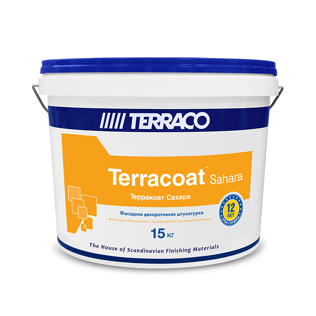 Терракоат Сахара - это готовое к применению финишное декоративное штукатурное покрытие на акриловой основе с равномерной наполненной зернистой текстурой типа «шуба» с эффектом песка.