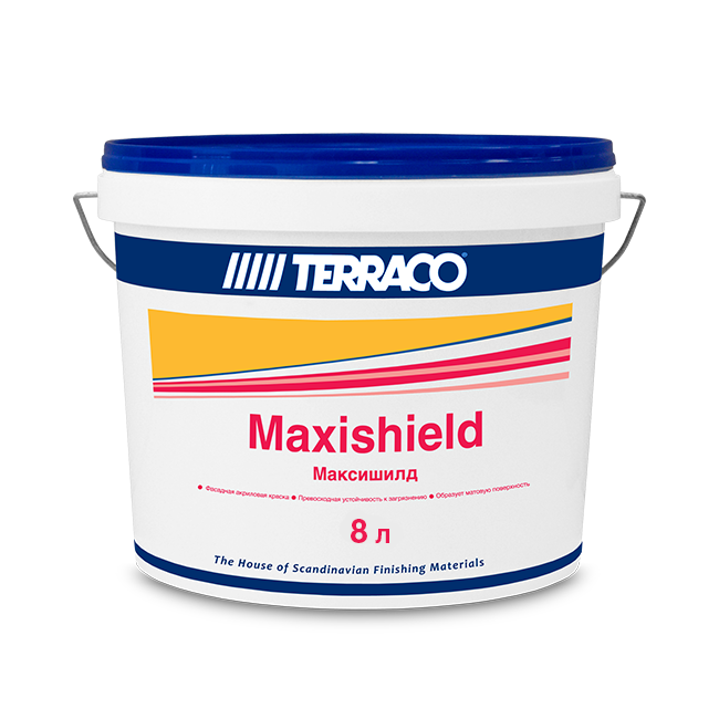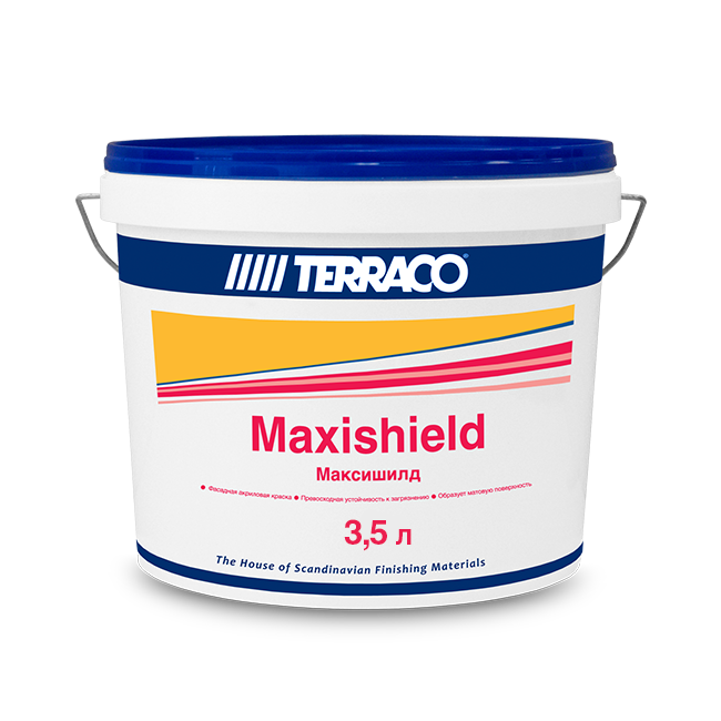 Максишилд предназначен для высококачественной финишной окраски как новых, так и старых как внешних, так и внутренних поверхностей. Идеален для окраски как декоративных текстурных покрытий, так и гладко ошпатлеванных поверхностей, образует матовое окрасочное покрытие, совмещающее высокую укрывистость, прекрасный внешний вид и хорошие технические характеристики.