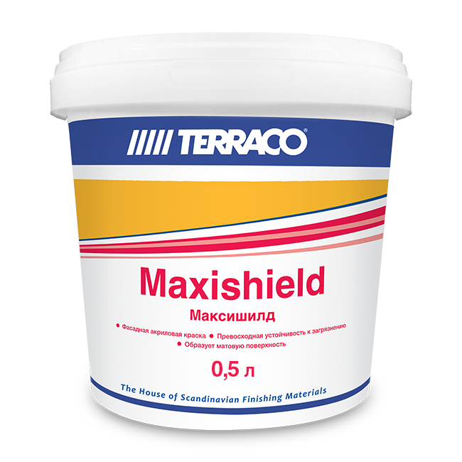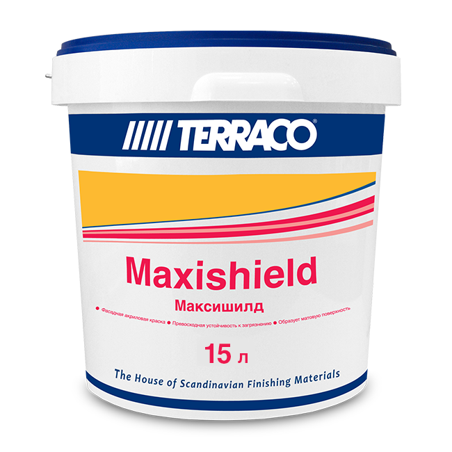 Максишилд – фасадная краска на акриловом связующем, для высококачественной окраски как гладких, так и текстурных поверхностей . Максишилд образует матовую бархатистую поверхность, обладает высокой укрывающей способностью, высокими техническими и эксплуатационными характеристиками, позволяющими его использовать для решения разнообразных общестроительных задач.