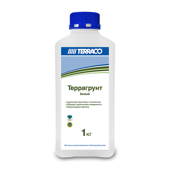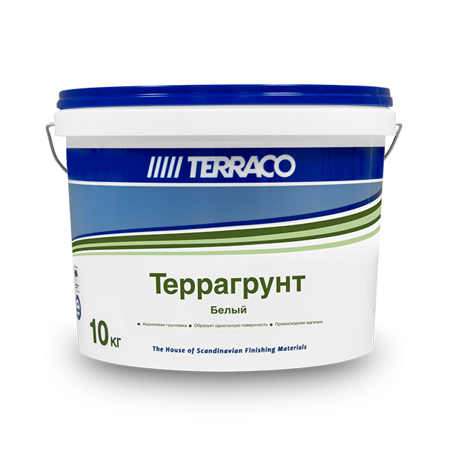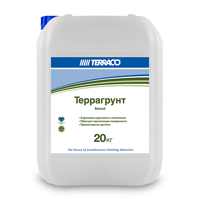 Террагрунт Белый – проникающая пигментированная грунтовка для наружного и внутреннего использования с выраженными анти щелочными свойствами. Глубоко проникает в материал основания на основе цемента, извести и гипса. Выравнивает впитывающую способность основания, укрепляет, применяется в качестве грунтовки перед применением почти всех видов декоративных покрытий, красок и тонкослойных штукатурок Террако.
