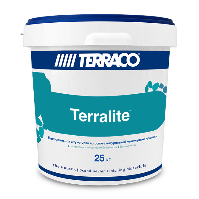 Терралит в Коллекции Санлайт - это готовое к применению цветное “мозаичное” декоративное покрытие на основе акрилового связующего и мраморной крошки светлых пастельных оттенков. Терралит Cанлайт обеспечивает качественную архитектурную отделку поверхности, придает ей высокую механическую прочность, долговечность и вид натурального природного камня. Терралит коллекции Санлайт выпускается двух видов в зависимости от размера используемой мраморной крошки и разделяется на Терралит Крупнозернистый и Терралит Мелкозернистый.