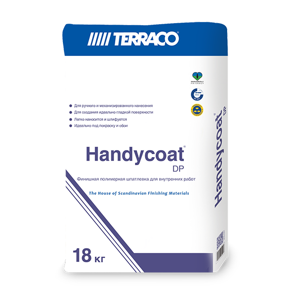 Хэндикоат DP (Handycoat DP) - шпатлёвка на полимерной основе в виде сухой смеси, используемая как для ремонта и подготовки старых и новых поверхностей под финишное выравнивание, так и для подготовки поверхности под покраску, наклейку обоев и нанесение декоративных покрытий внутри сухих помещений. Скрывает трещины толщиной с волос.
