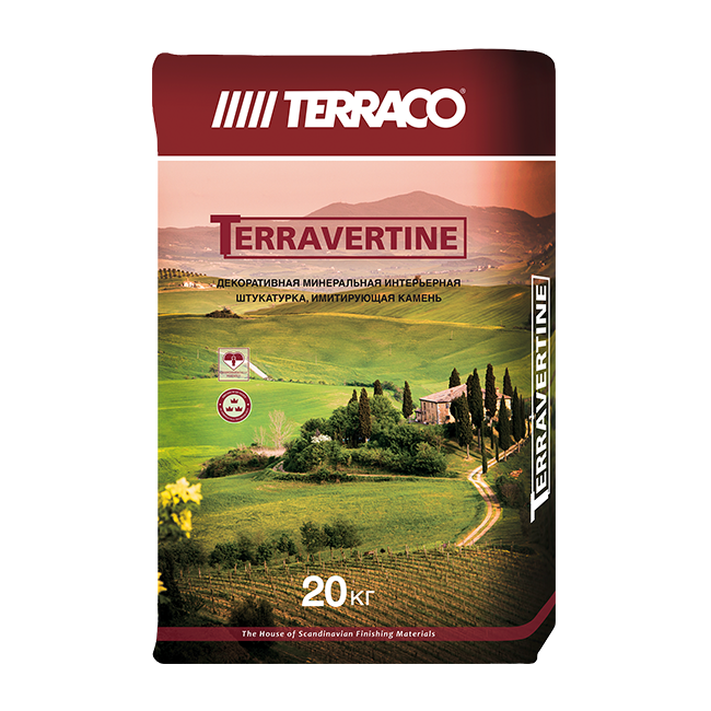 Терравертин является натуральным штукатурным составом в виде сухой смеси на основе гашенной извести и минеральных наполнителей, применяется на большинстве внутренних поверхностей в качестве декоративного покрытия, позволяющего создавать как гладкую, так и текстурную финишную отделку.