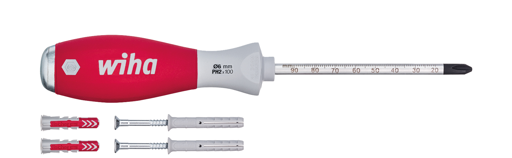 Повышает эффективность : Жало отвёртки со шкалой позволяет точно измерять глубину. Точно выполненное отверстие под дюбель благодаря подобранному по размеру жалу отвёртки.