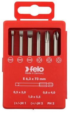 - Felo Набор из 6 бит SL/H (+/-) Industrial 73 мм в кейсе размерами SL 0,5x3,0 / 0,8x4,0 / 5,5x1,0; H 1 / H 2 и PH2.