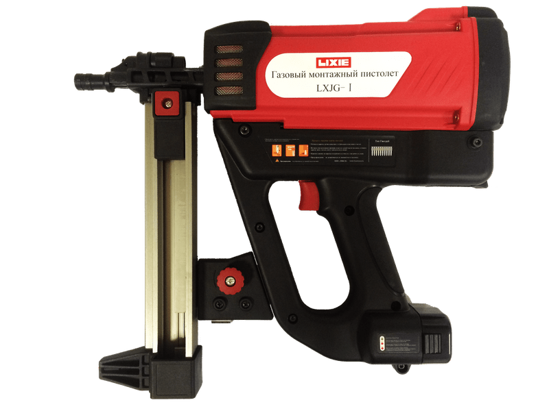 Газовый монтажный пистолет “Lixie” представляет собой гвоздезабивной инструмент, который подходит для работ по внутренней отделке, электромонтажа, натяжных и навесных потолков, а также других видов работ. Пистолет может пристреливать различные материалы к бетону, газобетону, стали, а также кирпичу с помощью гвоздей TWSD и WSD, которые варируются от 17мм до 32мм. Главное отличие от использования традиционных методов монтажа в том, что он не требует предварительного сверления.