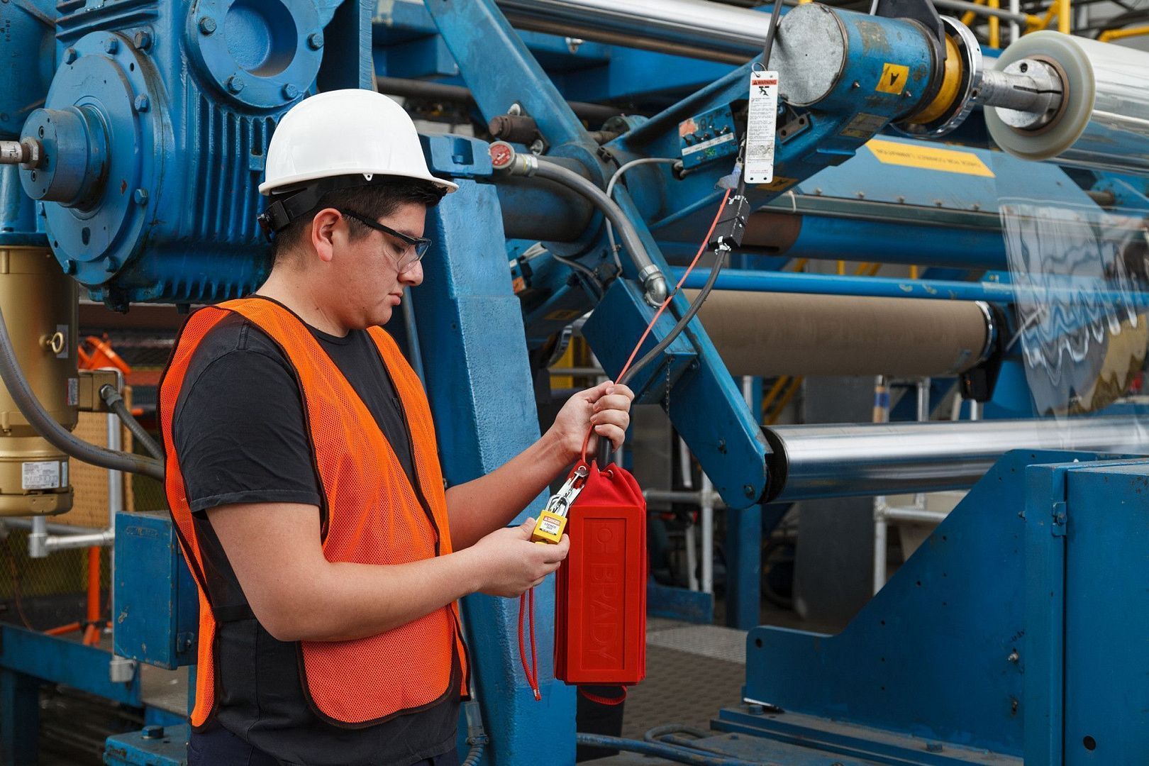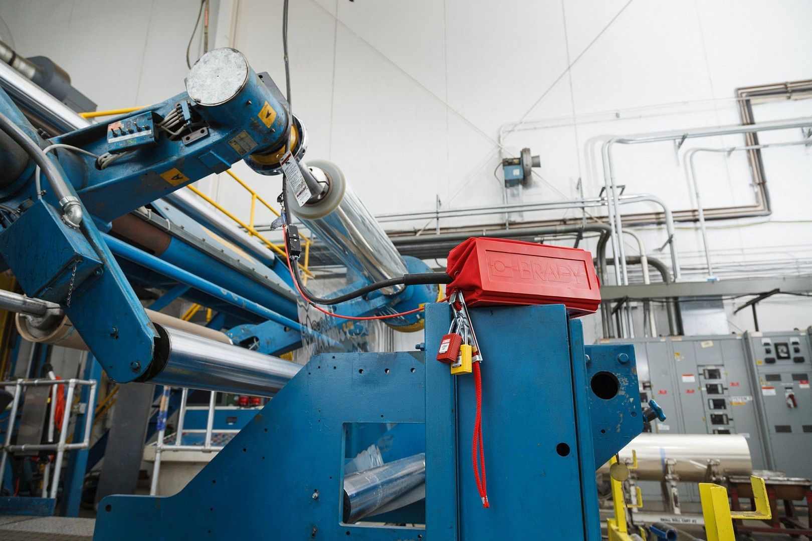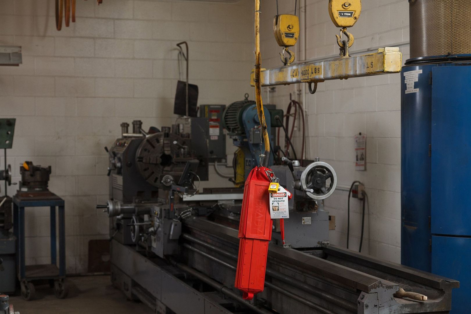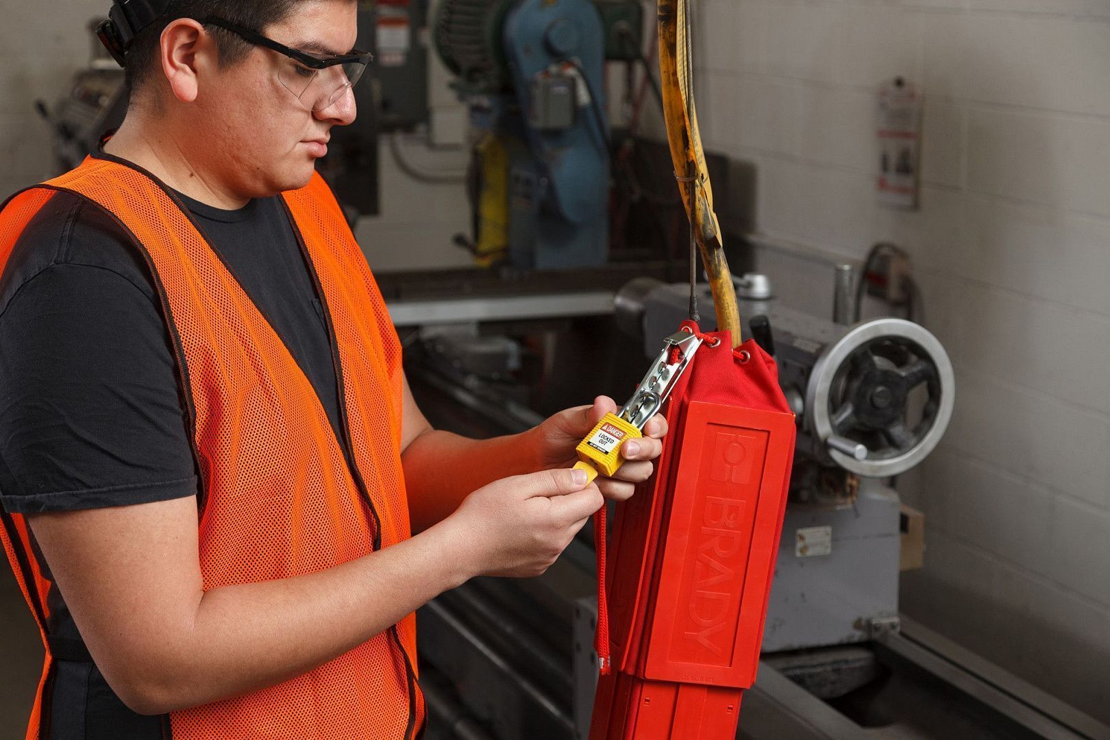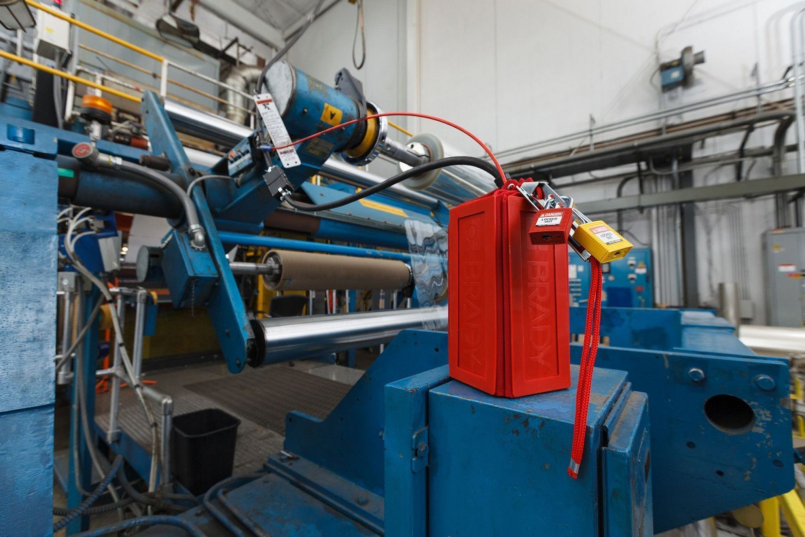 Блокиратор подвесных пультов управления для механических подъёмников или мостовых кранов. Изготовлен в форме чехла с пластиковой окантовкой.
