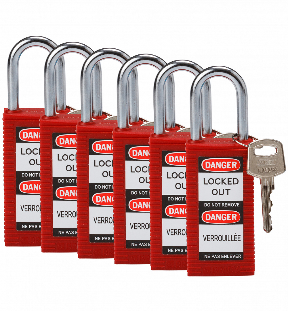 Замки Brady системы Lockout Tagout для обеспечения безопасности на производстве, сохранения здоровья и жизни работников. Универсальны в применении, а удлинённый корпус позволяет нанести большое количество текстовой и графической информации (например, предупреждения на нескольких языках). Ключи стандартные в среднем на 15000 комбинаций.