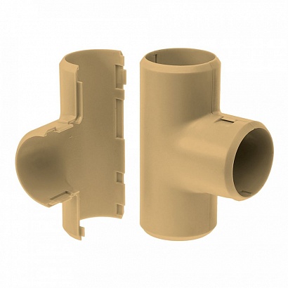 Предназначен для соединения гофрированных труб или гладких труб из пластика, образуя Т-образное ответвление, что позволяет придать более эстетичный внешний вид местам соединения. Состоит из двух частей соединяющихся друг с другом. Благодаря разъёмному корпусу, имеет возможность установки на уже смонтированную трассу.