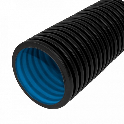 —Труба гофрированная двустенная ПНД жесткая тип 450 (SN6) стойкая к ультрафиолету не распространяющая горение черная д200 6м (12м/уп) Промрукав