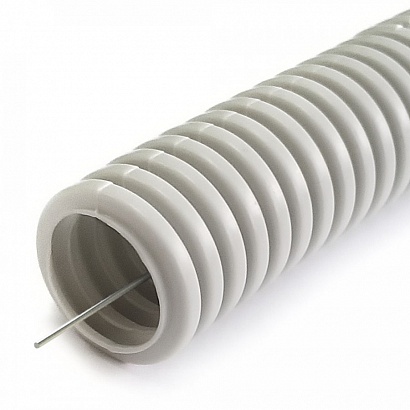 —Труба гофрированная ПНД лёгкая 350 Н безгалогенная (HF) стойкая к ультрафиолету серая с/з д40 (15м/960м уп/пал) Промрукав