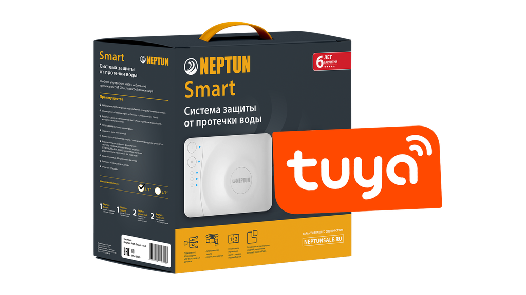 Умная система защиты от протечки воды Neptun PROFI Smart Tuya предназначена для обнаружения и локализации протечек воды в системах водоснабжения. Компоненты системы связаны и взаимодействуют друг с другом через центральный контроллер (модуль управления Neptun Smart), который может быть дополнительно укомплектован дополнительными платами расширения: