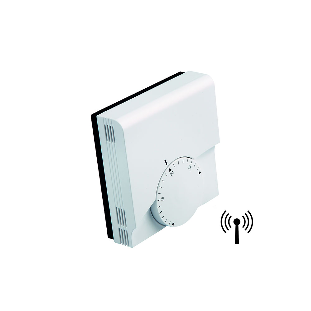Для управления термостатом необходима беспроводная коммутационная коробка арт. 7744001х. Функции работы на обогрев или охлаждение обеспечиваются коммутационной коробкой. Радиус действия термостата – примерно до 25 метров от коммутационной коробки в зависимости от материала стен.