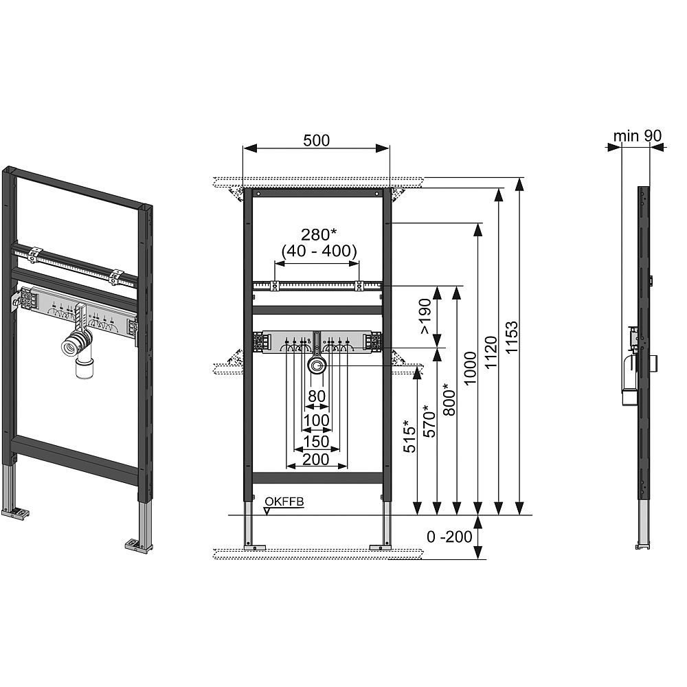 комплект крепежных элементов для установки раковины (установочное расстояние от 40 до 400 мм);