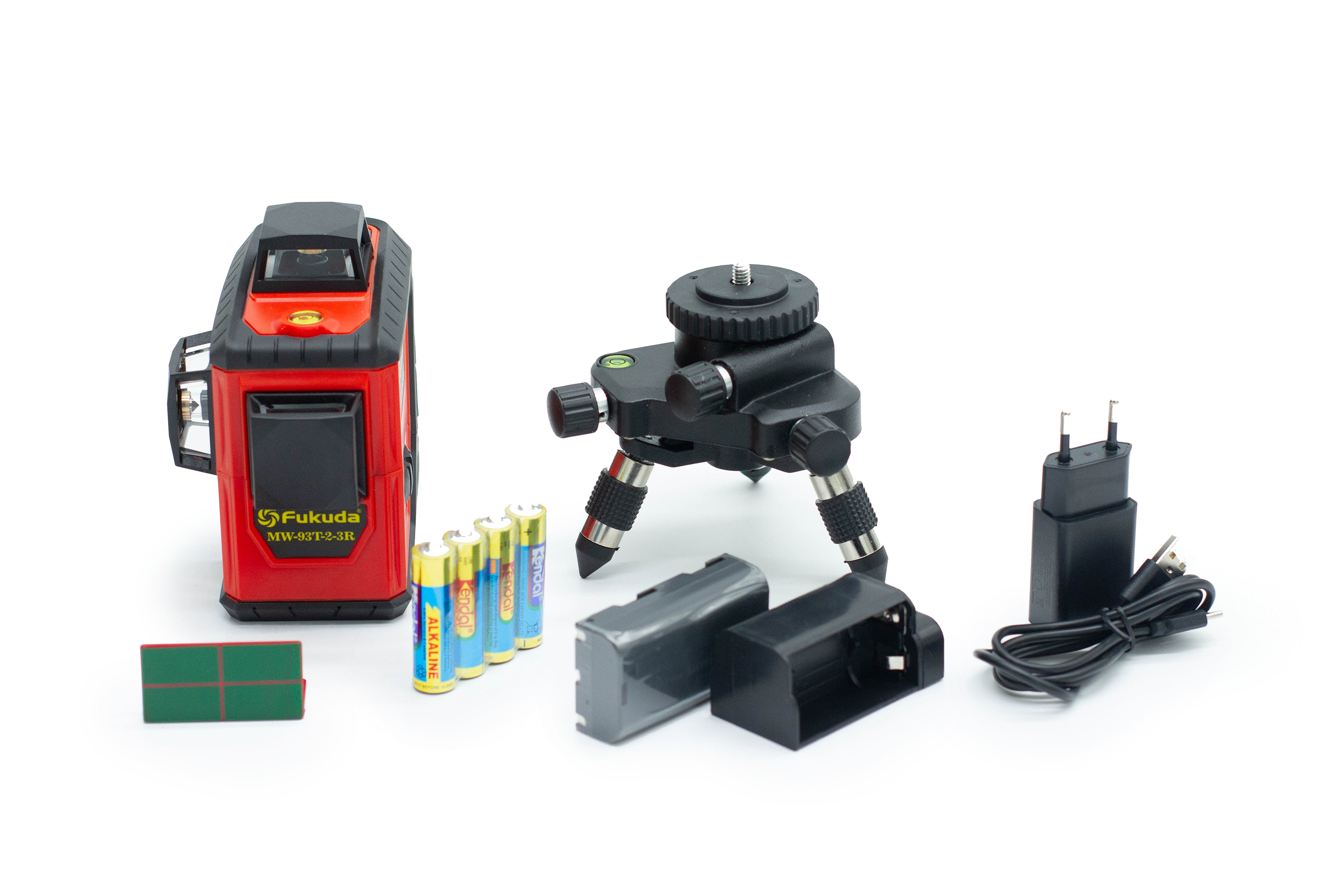 Лазерный нивелир Fukuda MW-93T-2-3R – недорогой, качественный, надежный и самый точный лазерный уровень с красным, ярким лучом. Данный прибор в первую очередь предназначен для разметки внутри помещений и может использоваться как профессиональными специалистами на стройке, так и домашними мастерами. Лазерный уровень сконструирован таким образом, что позволяет построение сразу трех плоскостей с углом развертки в 360° и точностью ± 0,2 мм/м. Каждую плоскость можно включать отдельно, что обеспечивает экономию батареи