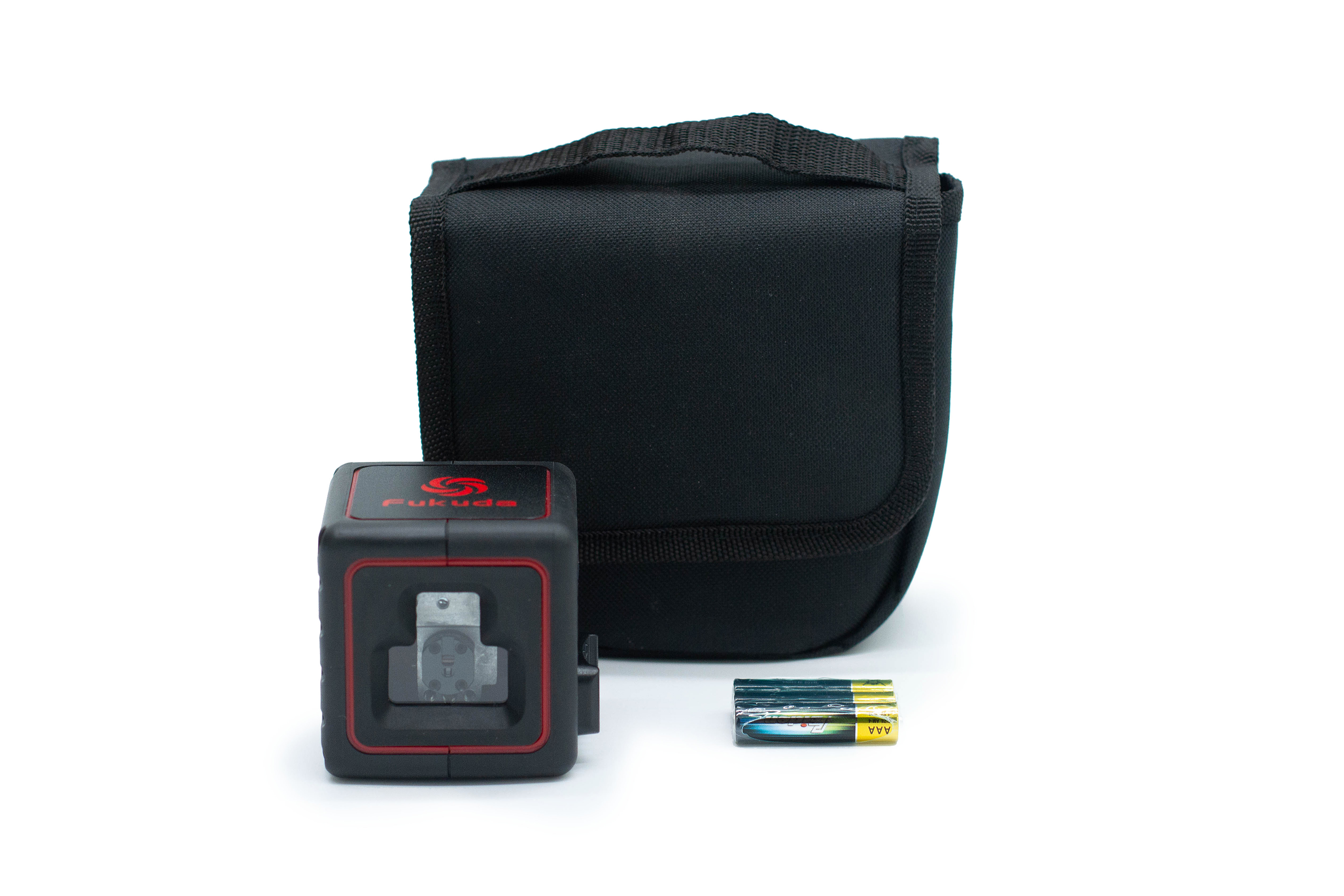 Fukuda EK-212P самовыравнивающийся построитель лазерных плоскостей. Инструмент проецирует 1 горизонтальную и 2 вертикальных плоскости. С помощью уровня Fukuda удобно выполнять разметку перед навешиванием полок на стену, монтажом электропроводки и установкой подвесного потолка. Управление устройством осуществляется посредством большой кнопки. Обрезиненный корпус в форме куба выдерживает значительные механические нагрузки, падения и удары. При установке на горизонтальной поверхности вертикальный луч начинается в 1 см от прибора. Очень удобно, например, при укладке плитки на полу. Можно закрепить на штатив или повесить на стену.