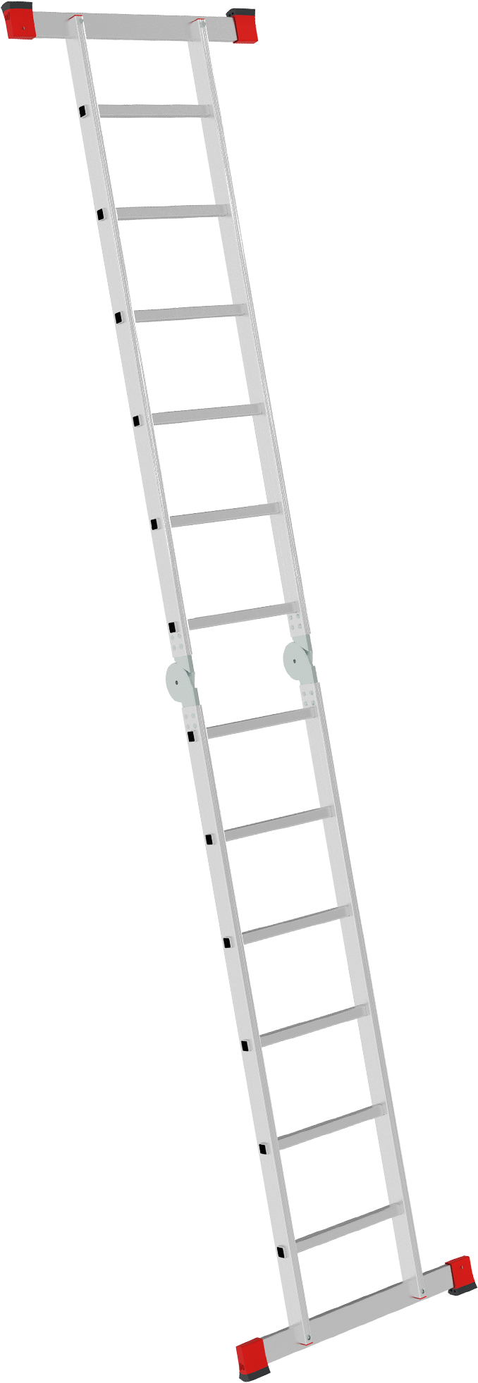 - «2 в 1» двухсторонняя стремянка и приставная лестница. Для коллективных строительно-монтажных работ.