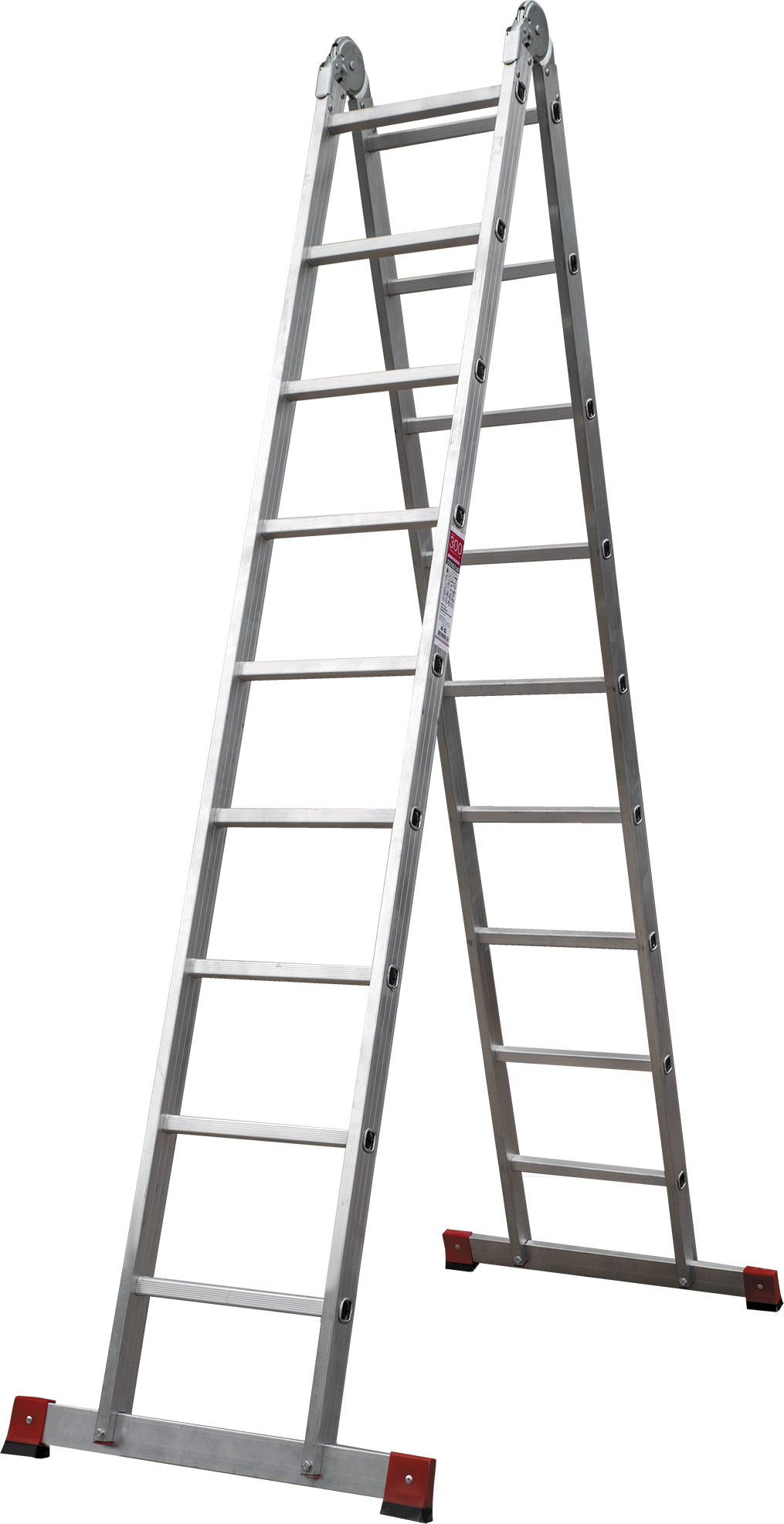 - «2 в 1» двухсторонняя стремянка и приставная лестница. Для коллективных строительно-монтажных работ.