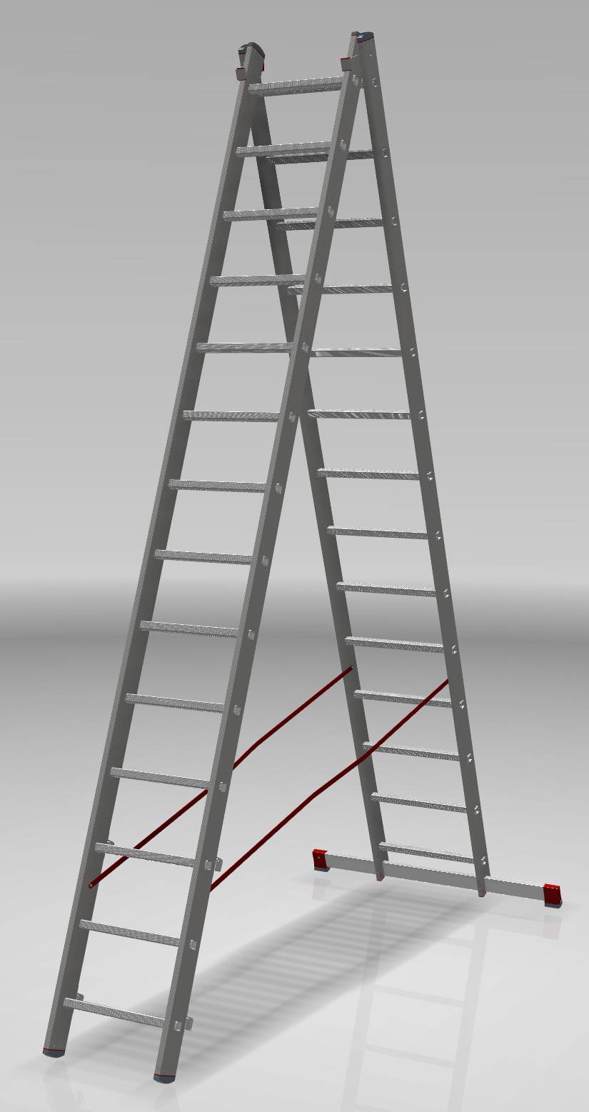- Опорные наконечники стоек и траверсы из прочного двухкомпонентного пластика на заклёпках (жёсткий компонент отвечает за надёжность крепления, мягкий препятствует скольжению лестницы)