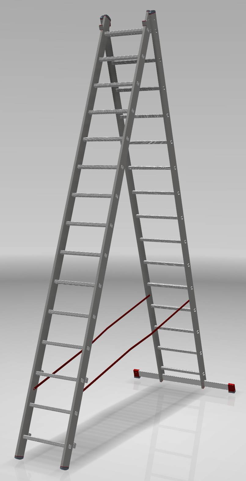 • Опорные наконечники стоек и траверсы из прочного двухкомпонентного пластика на заклёпках (жёсткий компонент отвечает за надёжность крепления, мягкий препятствует скольжению лестницы)