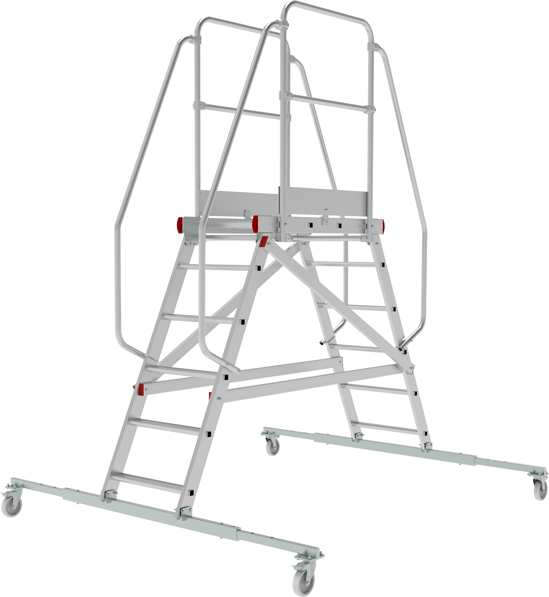 - Рабочая площадка 800×500 мм обеспечивает безопасность и удобство при продолжительной работе на высоте. Максимальная рабочая поверхность и устойчивость при работе на площадке.