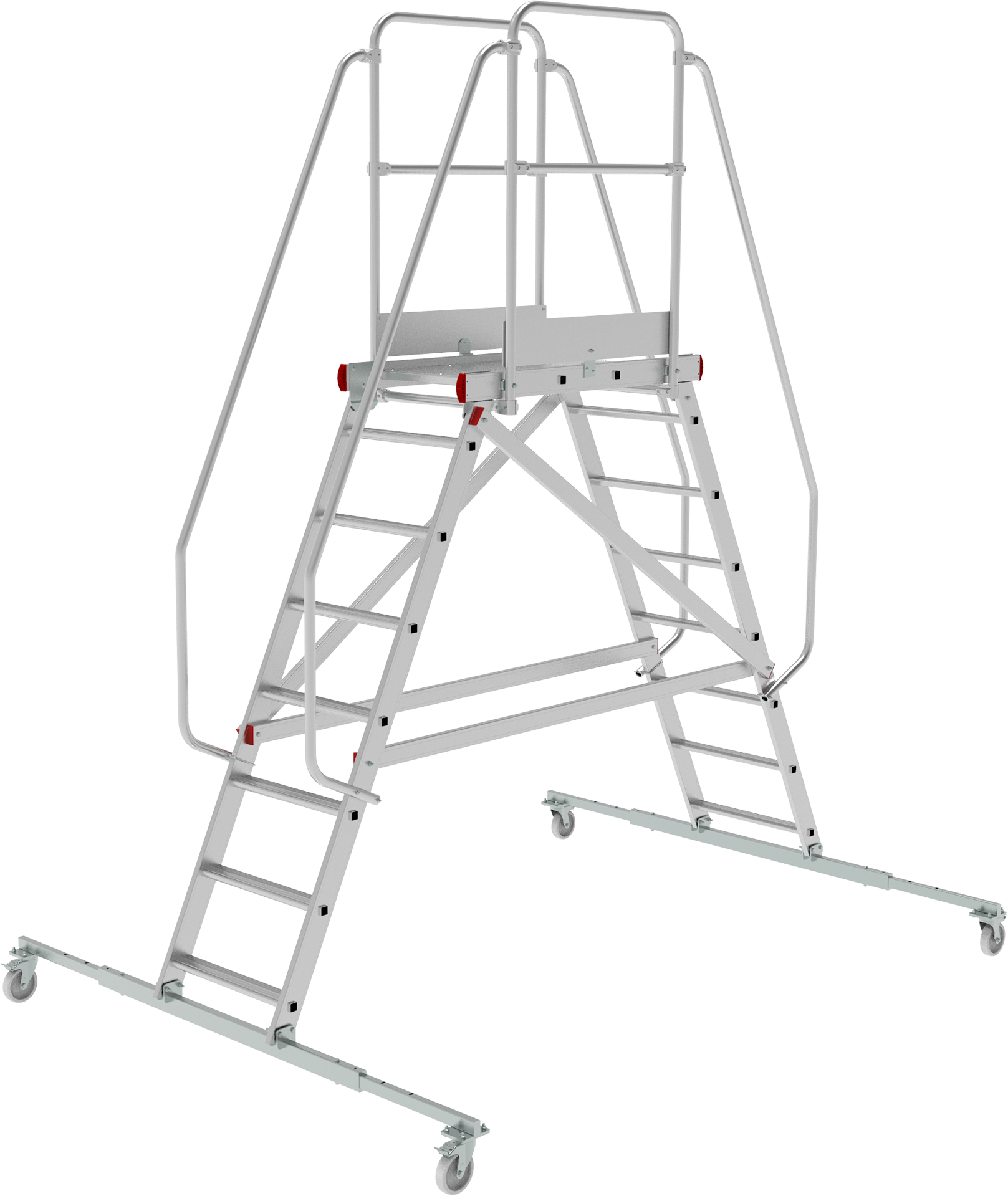 - Рабочая площадка 800×500 мм обеспечивает безопасность и удобство при продолжительной работе на высоте. Максимальная рабочая поверхность и устойчивость при работе на площадке.