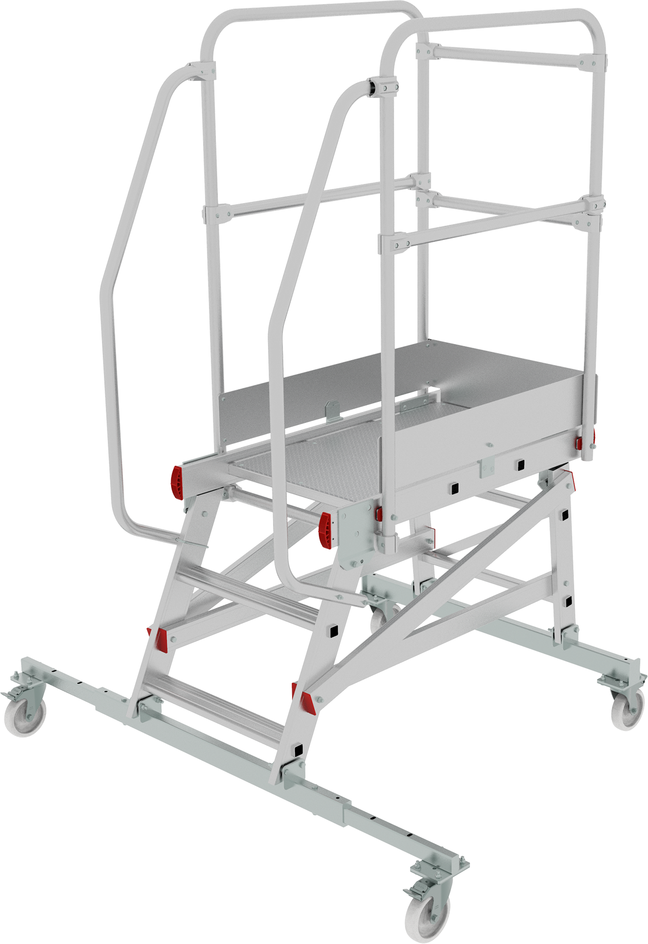 • Рабочая площадка 800×500 мм обеспечивает безопасность и удобство при продолжительной работе на высоте. Максимальная рабочая поверхность и устойчивость при работе на площадке.