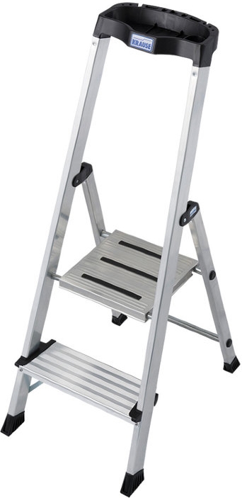 - Модель стремянки Krause Safepro (127204) имеет небольшую рабочую высоту — 2,4 метра, общую высоту конструкции 1 метр, блину наклонной боковины 1,5 метра, расстояние от пола до платформы всего 40 сантиметров и вес всего лишь 3 килограмма.
