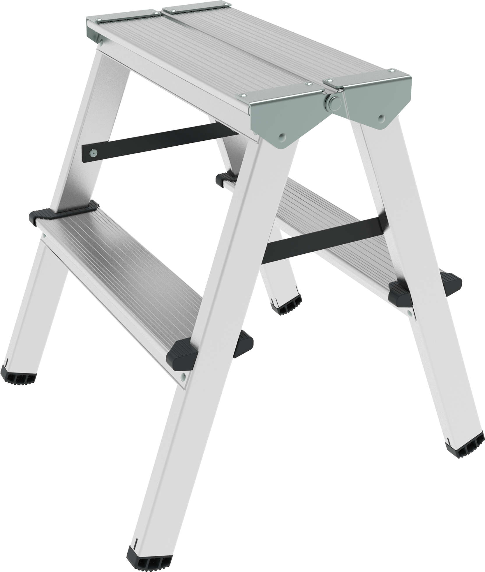 - Алюминиевая складная площадка 350×160 мм из 2 ступеней. Удобно ставить инвентарь.