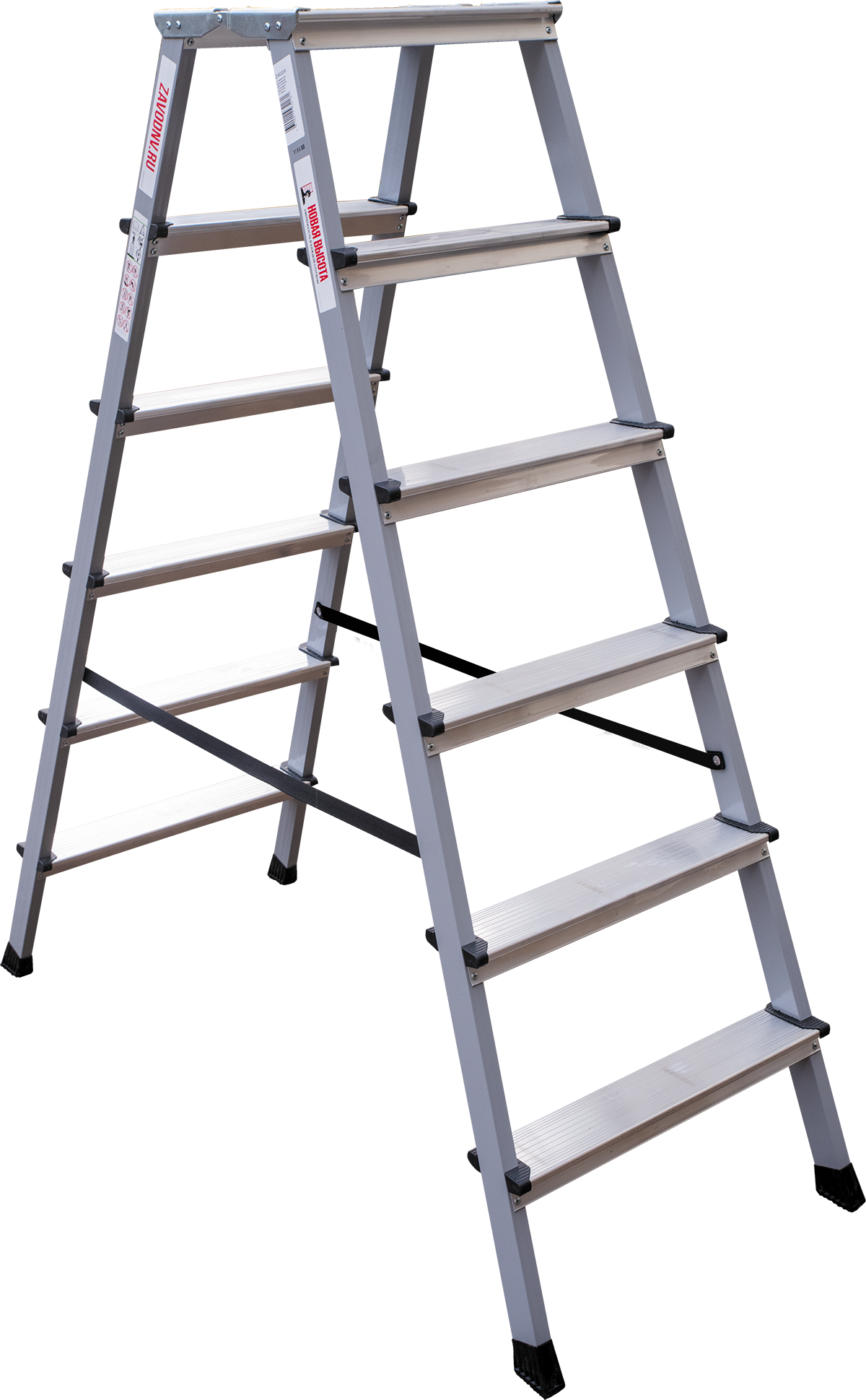 —Стремянка двухсторонняя стальная с алюминиевыми ступенями и площадкой 350×260 мм NV2140 артикул 2140206