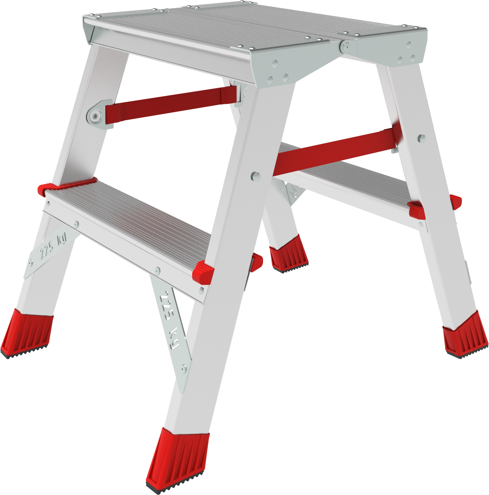 - Ориентация ступеней на обе стороны позволяет работать, не переставляя стремянку и тем самым экономя время