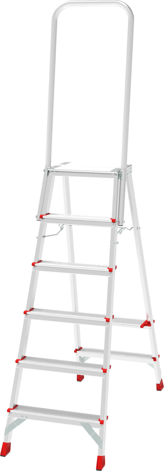 • Место для отдыха и дополнительная опорная ступень на заднем каркасе. Стабилизируют стремянку.