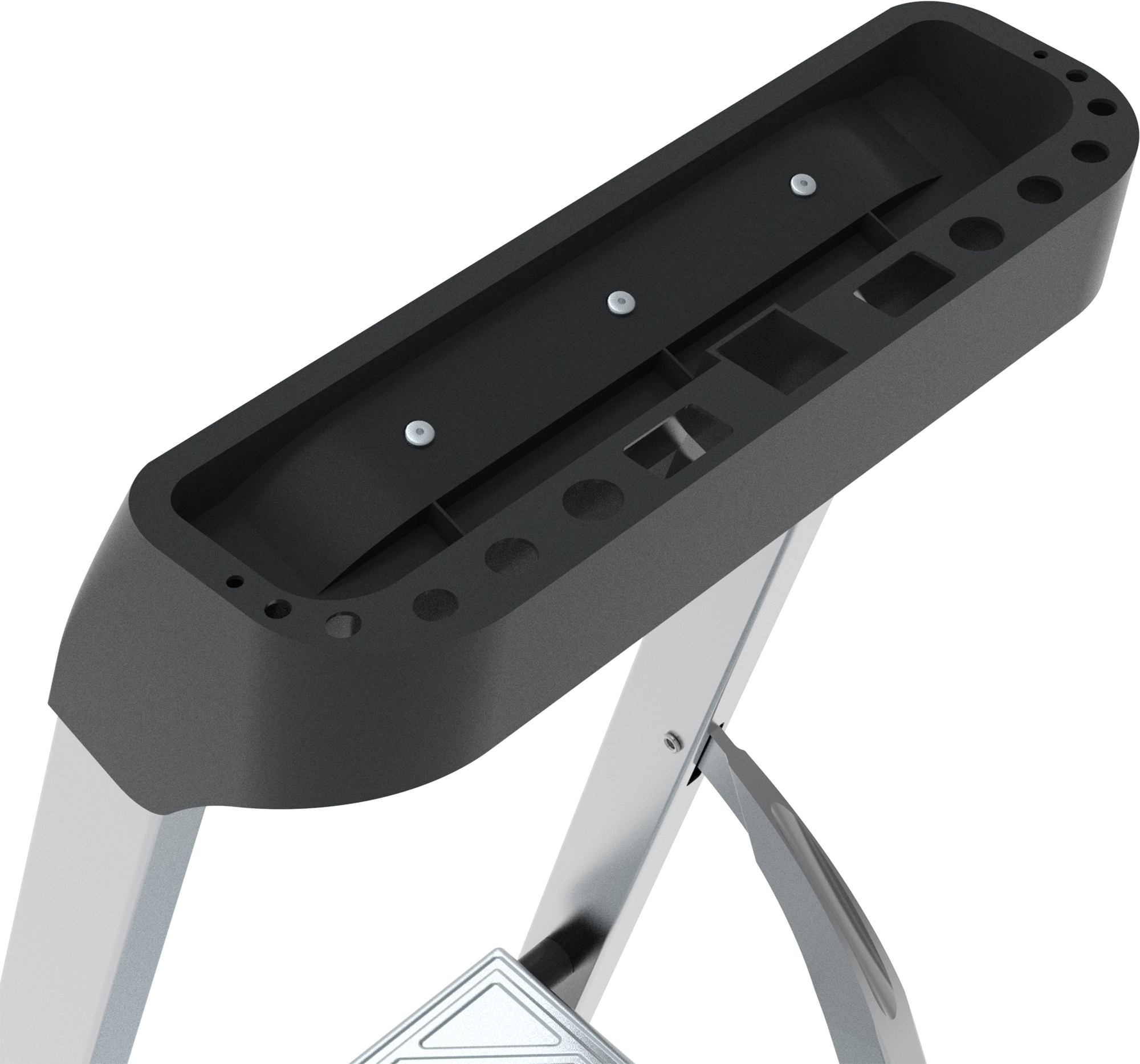 • Усиленное крепление стоек заднего каркаса с развальцовкой. Повышает устойчивость стремянки.