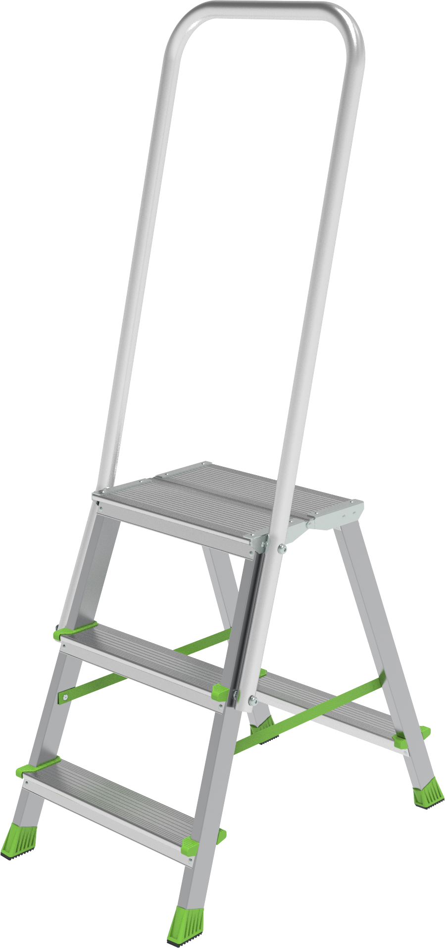 - Дополнительная опорная ступень на заднем каркасе стабилизирует стремянку.