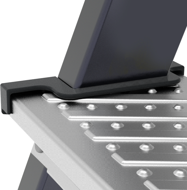 • Усиленное крепление стоек заднего каркаса с развальцовкой. Повышает устойчивость стремянки.