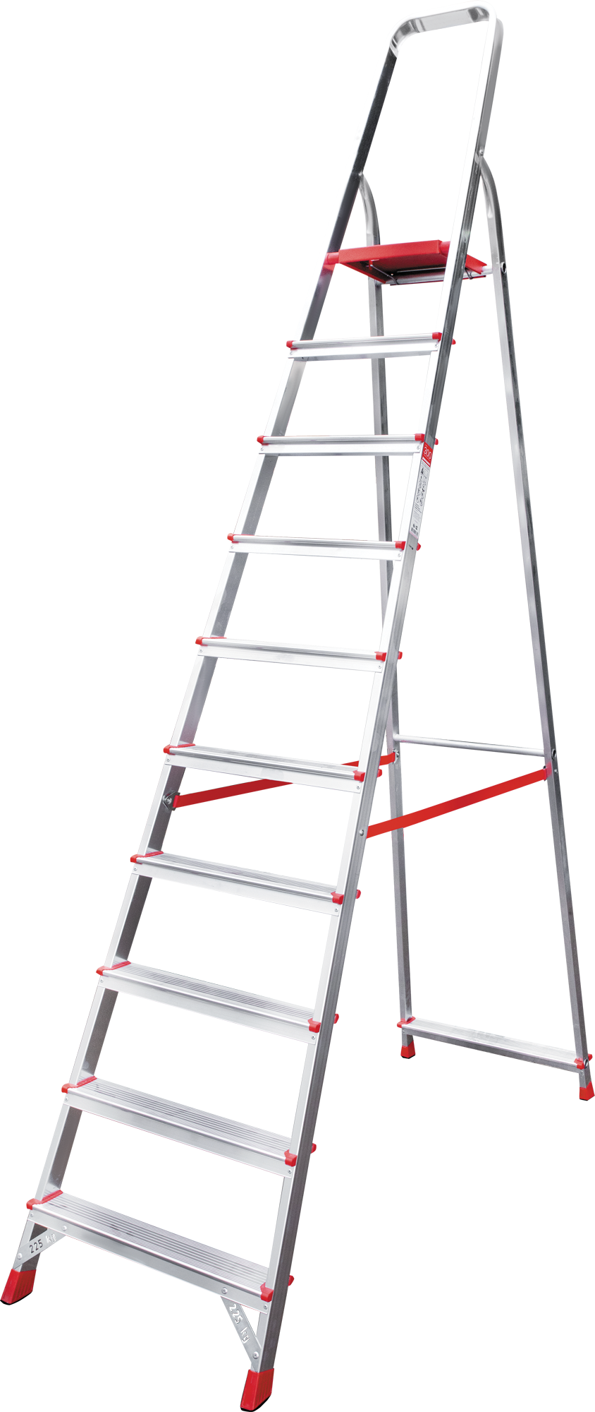 • Дополнительная опорная ступень на заднем каркасе. Стабилизирует стремянку.