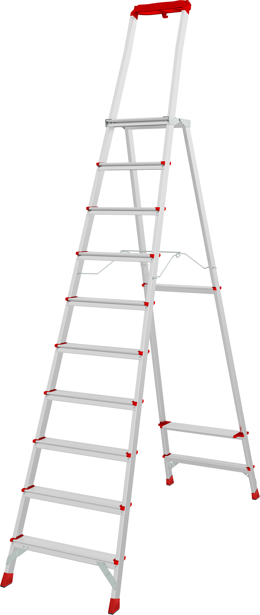 Лёгкая высокопрочная стремянка для интенсивного использования с увеличенным радиусом работы на высоте. Инвентарь всегда под рукой.