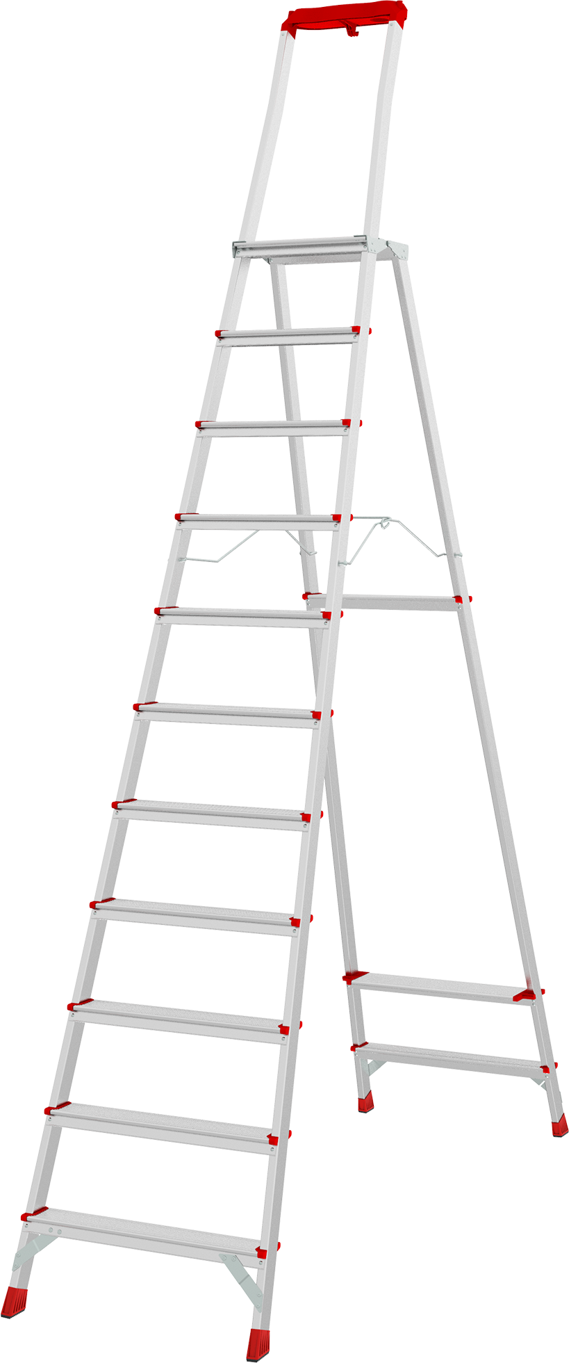 Лёгкая высокопрочная стремянка для интенсивного использования с увеличенным радиусом работы на высоте. Инвентарь всегда под рукой.