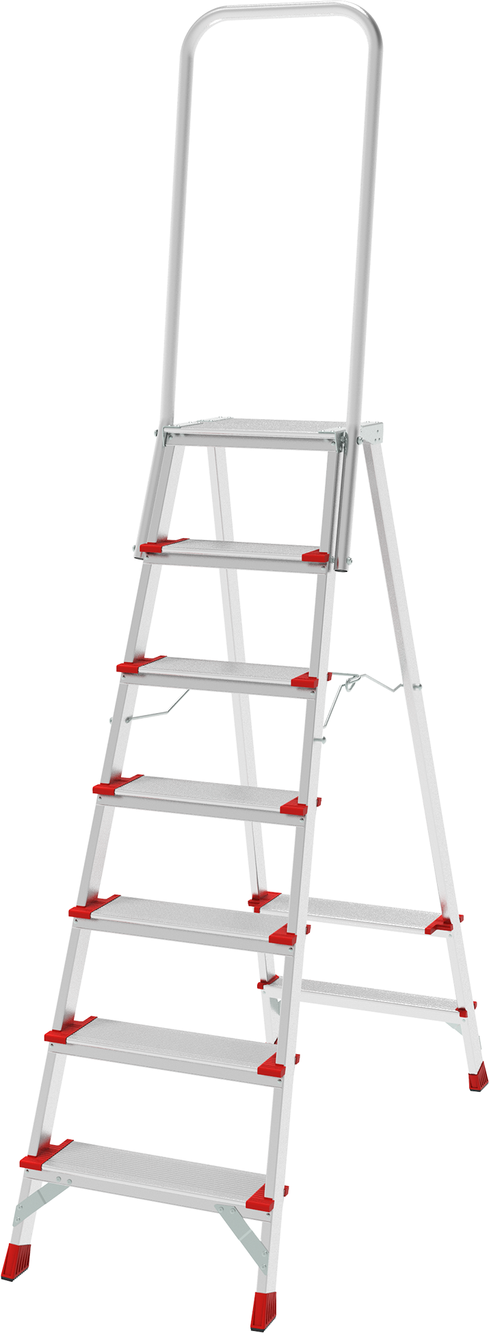 —Профессиональная анодированная стремянка со ступенями 130 мм, складной площадкой 350×260 мм и дугой безопасности 800 мм NV 3139А артикул 3139107A