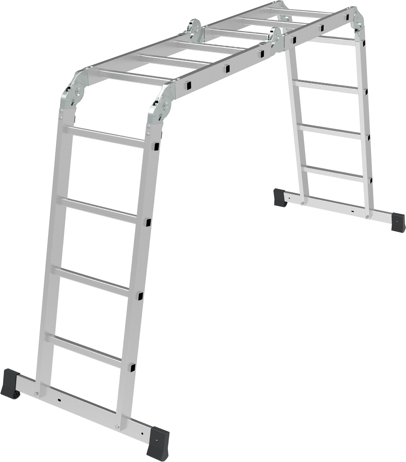 • Универсальная шарнирная лестница-трансформер «4 в 1»: приставная лестница, стремянка, Г-образная лестница, помост увеличенной ширины.