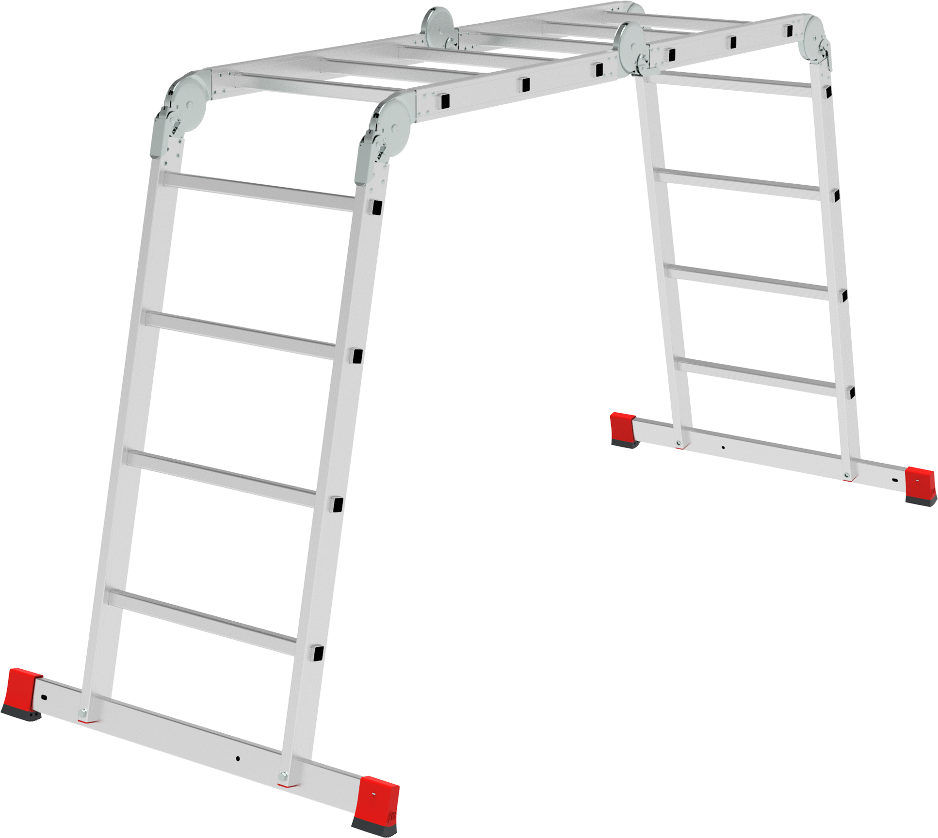 Высокопрочная лестница «4 в 1»: приставная, Г-образная с опорой на стену, двухсторонняя стремянка, помост. Увеличенная ширина для свободы перемещений.